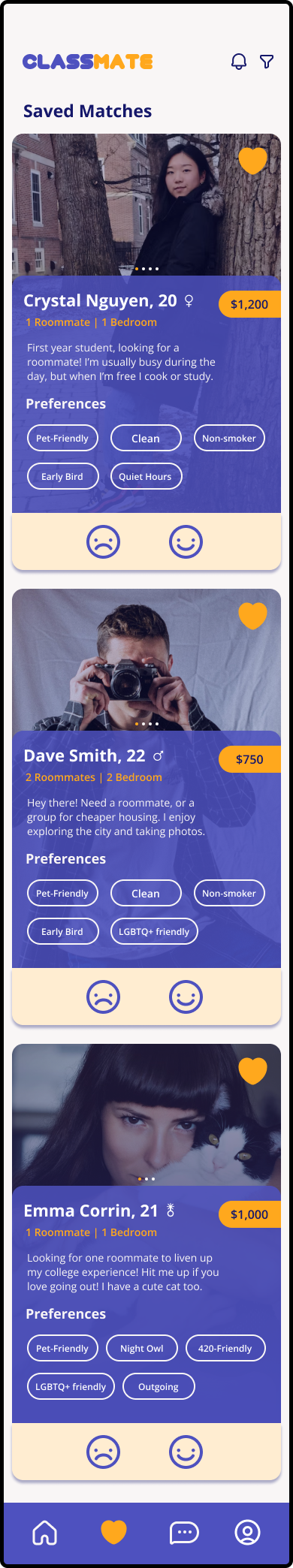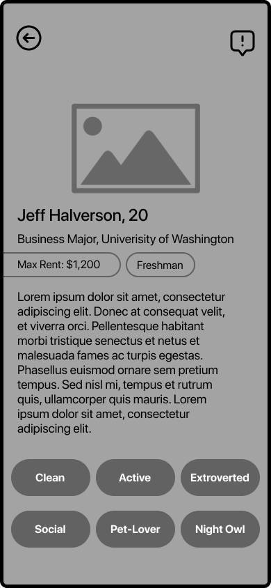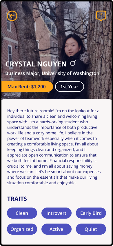 Users found it difficult reading students bio’s due to the length. Users wanted to see people’s preferences in a roommate vs. a wall of text.