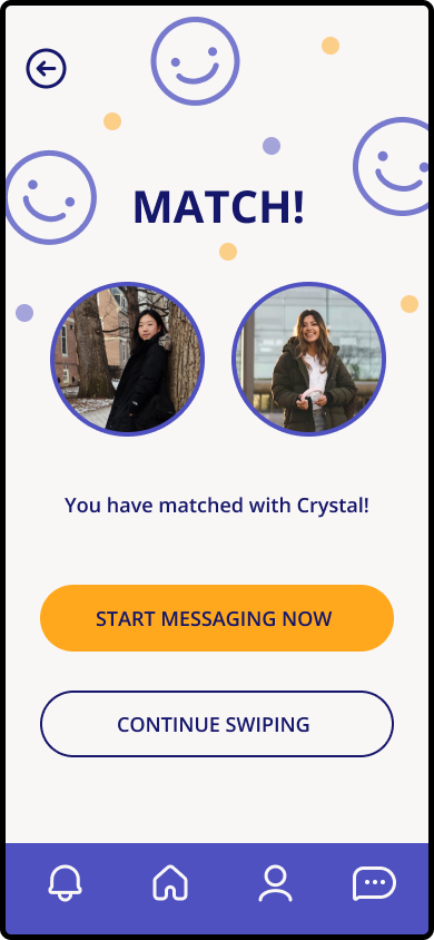 There was a need to have a type of tracking for profiles in case users wanted to go back to them later, but didn’t want to commit to matching yet. Added an additional screen for users to return to potential matches.