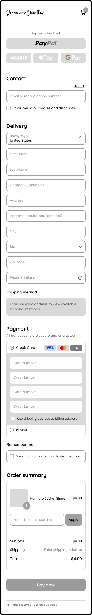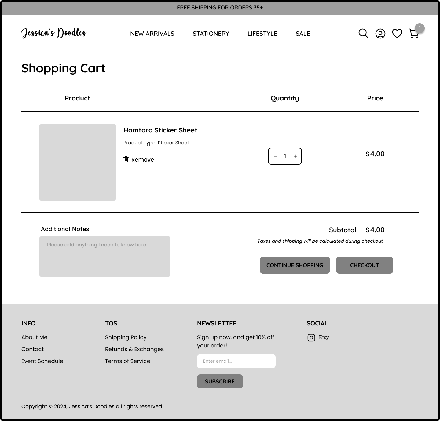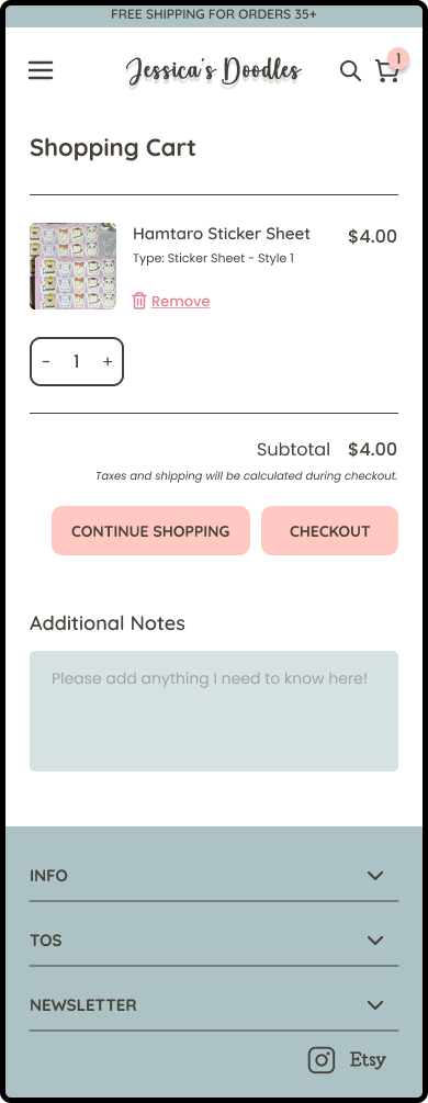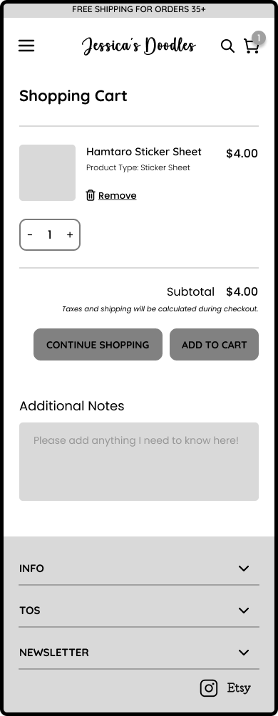 As an Etsy seller, she faces high fees on transactions, listings, and shipping, making it difficult to avoid increased costs to her customers. She wants a professional, standalone shop to guide customers directly, free from third-party fees and limitations, and to make her website more personable to her branding. My goal is to understand what customers look for in an online shop and design an intuitive site that reflects the artist's branding.