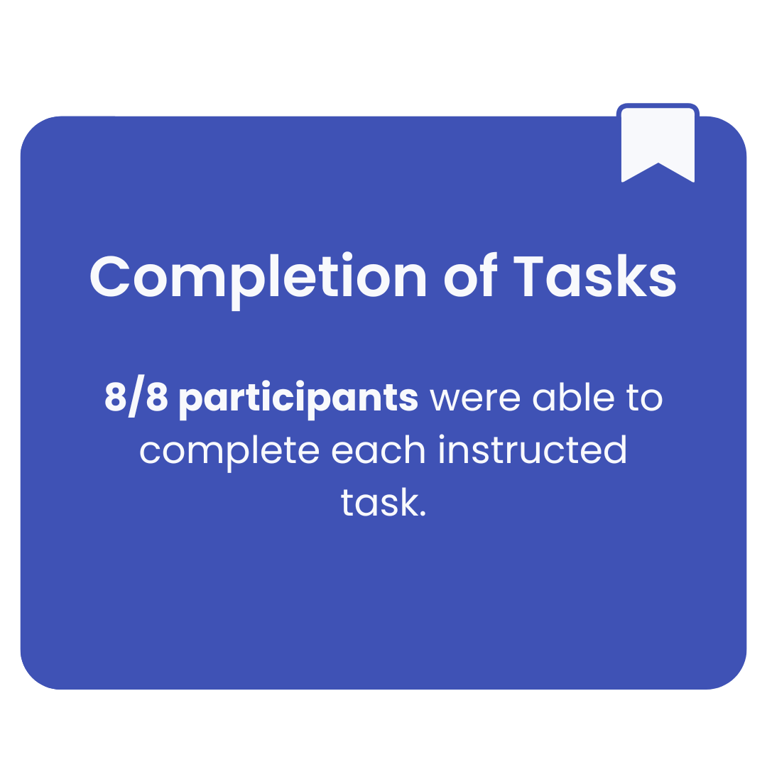 I conducted user testing with 8 participants from user interviews during the research phase. They were instructed to complete 3 tasks: