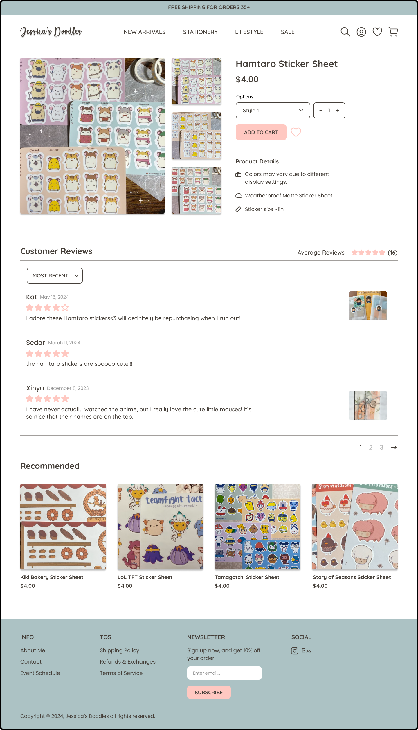 Jessica is a small business owner who illustrates and creates merchandise to sell at conventions, local events, and online stores, specifically Etsy. She sells a variety of handmade goods ranging from stickers, stationary, glassware, and various crochet items.